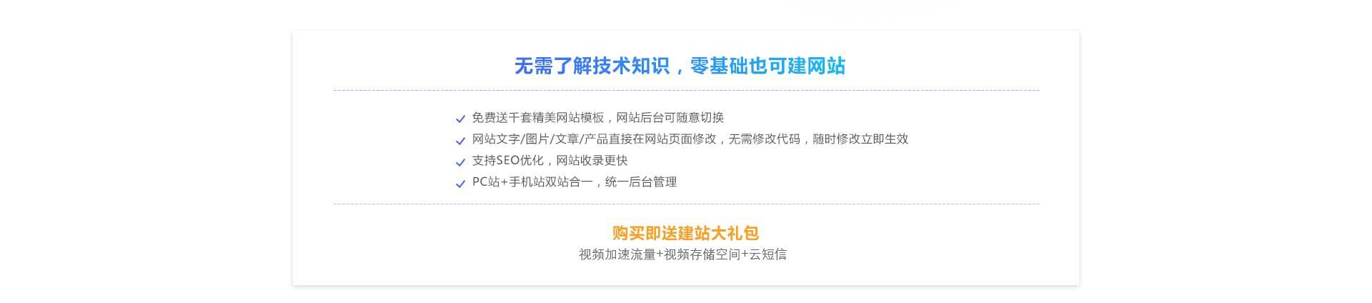 支持云視頻控件,視頻播放無廣告,預(yù)置短信功能,支持網(wǎng)站會員手機號驗證/付款發(fā)貨/留言評價等短信通知功能